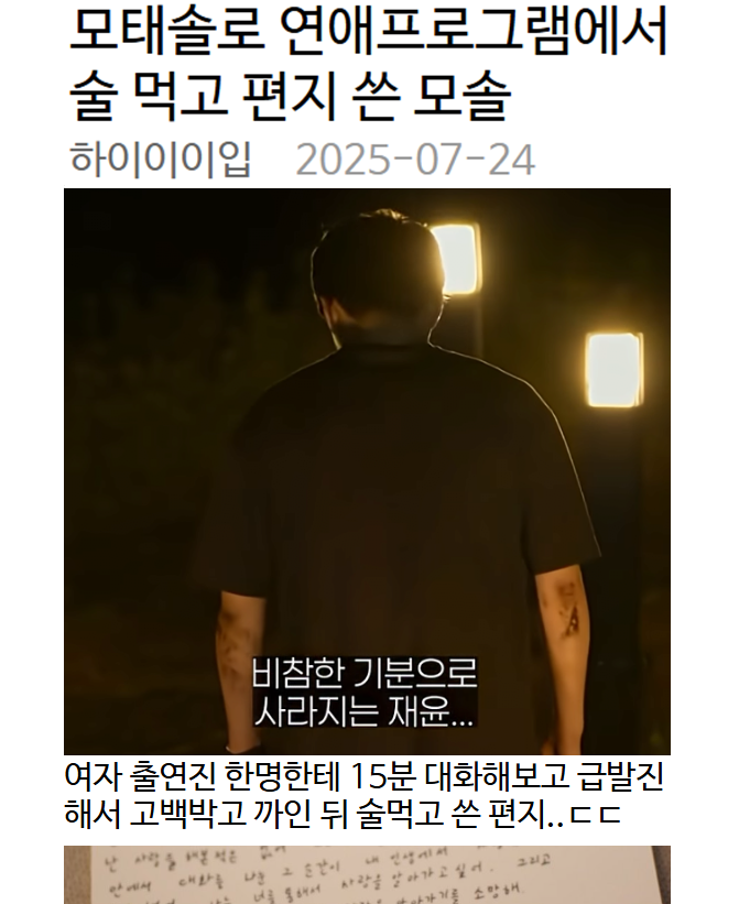 모태솔로 연애프로그램에서 술 먹고 편지 쓴 모솔