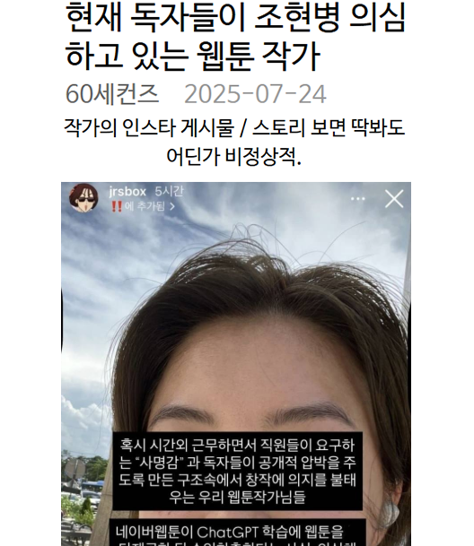 현재 독자들이 조현병 의심하고 있는 웹툰 작가