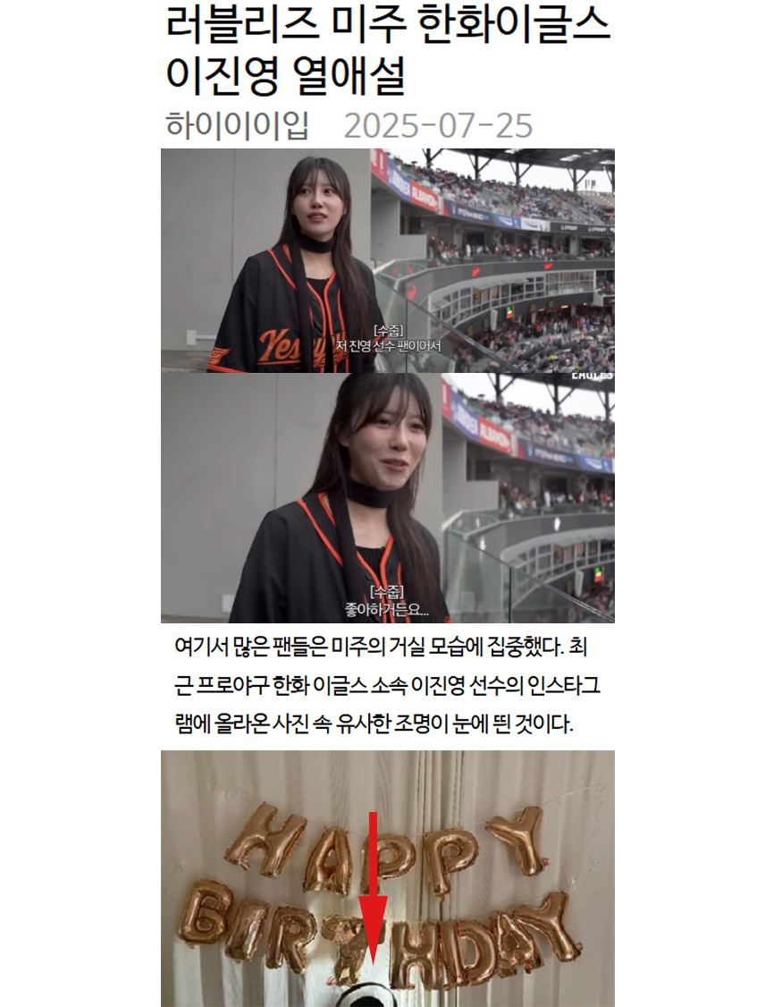 러블리즈 미주 한화이글스 이진영 열애설