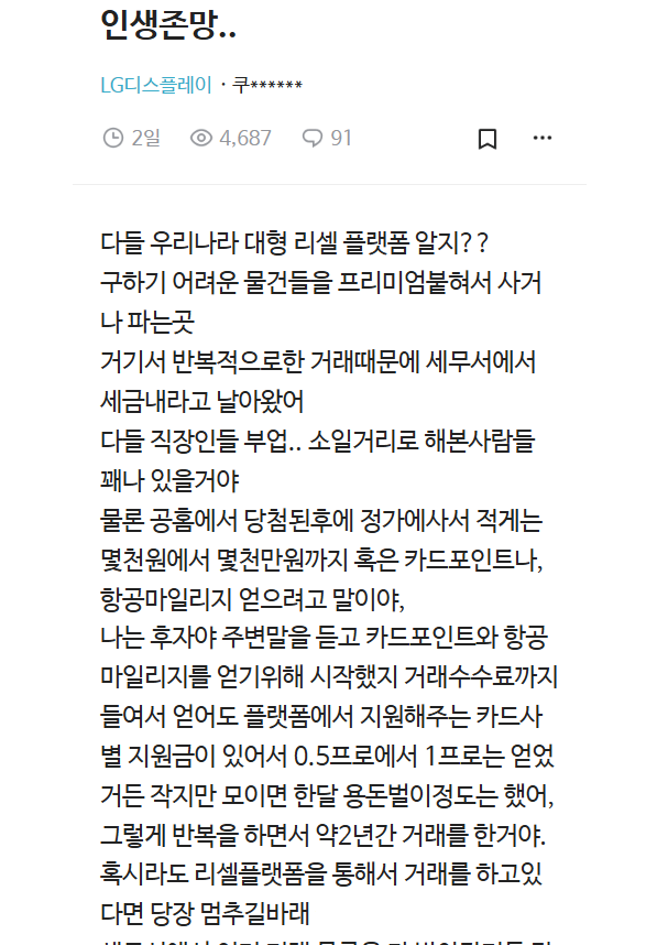 최근 국세청에서 세금고지서 날아오고 있다는 리셀러들 근...