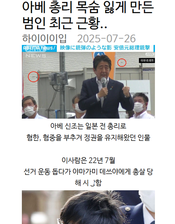 아베 총리 목숨 잃게 만든 범인 최근 근황..