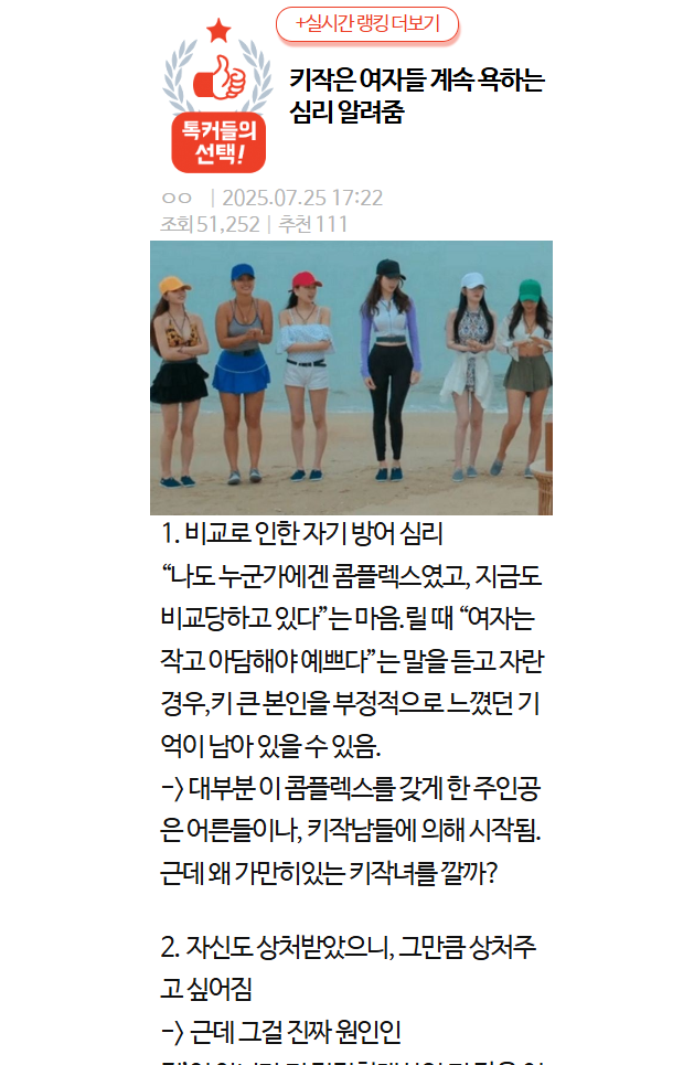 키작은 여자들 계속 욕하는 심리 알려줌