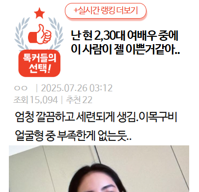 난 현 2,30대 여배우 중에 이 사람이 젤 이쁜거 같...