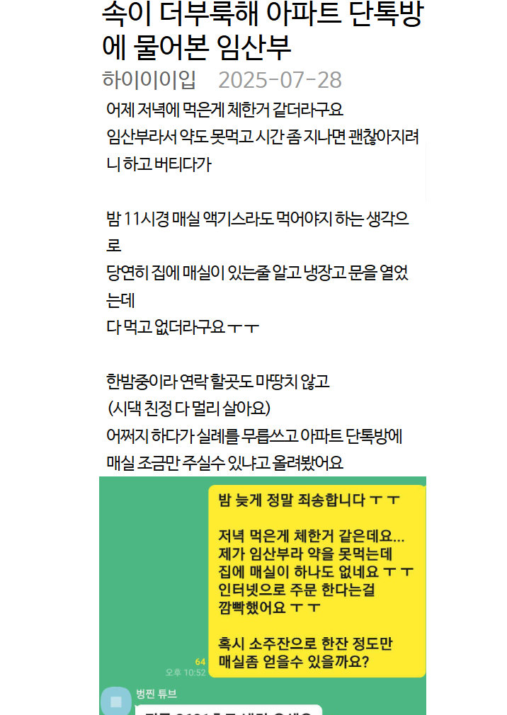 속이 더부룩해 아파트 단톡방에 물어본 임산부