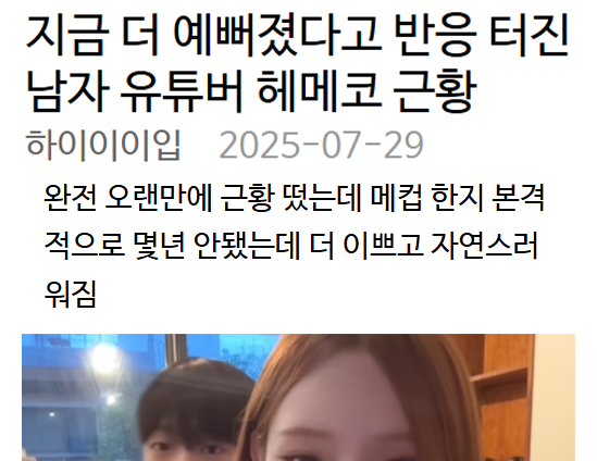 지금 더 예뻐졌다고 반응 터진 남자 유튜버 헤메코 근황