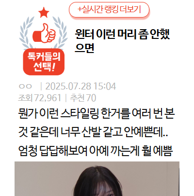 윈터 이런 머리 좀 안했으면 ...