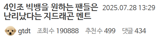 4인조 빅뱅을 원하는 팬들은 난리났다는 지드래곤 멘트
